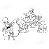 229431-Three Circus Lions with a ringmaster holding a ring-line-pdf.png